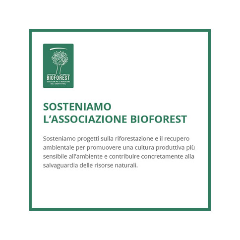 L’impegno ecologico è costante. Foppapedretti sostiene i progetti dell’associazione Onlus Bioforest sulla riforestazione e il recupero ambientale per promuovere una cultura produttiva più sensibile all'ambiente e contribuire concretamente alla salvaguardia delle risorse naturali.